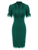Style: Made of lightweight and stretch fabric that have enough stretchy. Start with this women elegant short sleeve pencil dress will show a elegant and formal style,it also will show your female silhouette and natural waistline in the design of wrap slim fit design