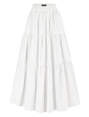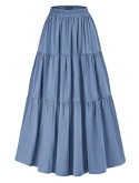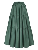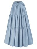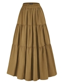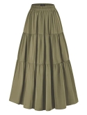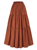 [ Features ]This long skirt is lightweight but non see-through, is designed with elastic high waist, which doesn't tight around the waist, stylish flowy tiered detail make it charming. Also, two functional sides pockets are convenient for daily wear.