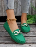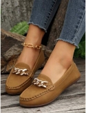 Type: Loafers Pattern Type: Plain Toe: Round Toe Details: Chain, Rhinestone Color: Beige Style: Fashionable Upper Material: PU Leather Lining Material: Suedette Insole Material: PU Leather Outsole Material: PVC