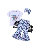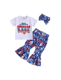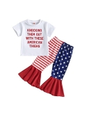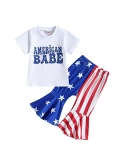 Design: 4th of July baby girl outfits, the T-shirt has fly sleeve, crew neck, letters and graphic printed. Pair with a pair of stars and striped flare pants and a headband, make your girl looks adorable.