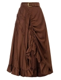 FeatureThis women steampunk skirt features on high-waisted corset skirt,concealed zip closure, detachable belt, ruffled a-line long skirt with pocket