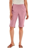 FEATURES: Relaxed fit through hip and thigh, elastic waistband, front pockets and side slits at bottom hem; 14 1/2 inch inseam (size medium); Hits at knee; Hand wash, line dry; Imported