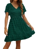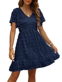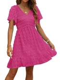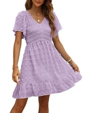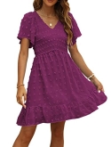 Unique design: This flowy mini dress features a flattering stretchy smocked bust design, sexy v neck, solid, high waist, short flutter sleeves, and cute ruffle hem adding a sense of sweet the summer dress.