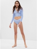 This bikini bottom is made with 85% recycled nylon. Less waste in the world. More great swimsuits for you.