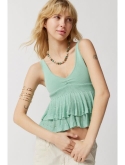 Tank top from UO in a sweater-style knit. Cropped to the waist with a scooped neckline and a low-cut back. Complete with a ruffled flowy bodice. Only available at Urban Outfitters.