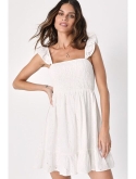 Sunny park days with your crush call for an adorable look like the Lulus Sweetest Aura Navy Blue Smocked Embroidered Mini Dress! Lightweight woven fabric shapes this darling dress that has a pierced and embroidered floral design throughout. Adjustable ruffled spaghetti straps support a smocked bodice with a straight neckline. Fitted waist tops a flounce-trimmed skirt that finishes at a mini hem.