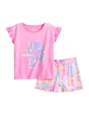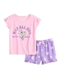 Shorts: elastic waistband, ribbon accent, ruffle trim on legs, allover print