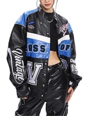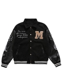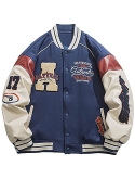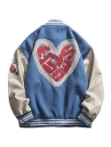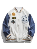 Features - Button closure leather patchwork baseball jacket, patch designs, This Letter Flocked Patchwork Varsity Jacket brings you a strong fashion trend and brand-new experience.