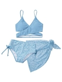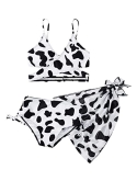Floral/cow print, criss cross, adjustable shoulder straps, removable bra, 3 piece swimsuit with cover up.