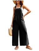 Cotton linen overalls for women, feature buttoned adjustable shoulder straps, loose fit, square neckline, wide leg jumpers for women