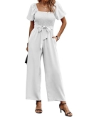 Catagory: women's jumpsuit, short sleeve playsuit, one piece outfit, women's pant rompers, wide leg jumpsuit summer