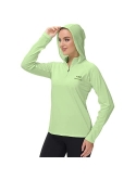 Comfortable, relaxed mock turtleneck and hood for extra sun protection of the neck, face and ears; Half zipper design for easy wear or off, and lets you adjust ventilation