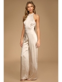 Celebrate your romance in a modern way with the Lulus Elegant Love Magenta Satin Tie-Back Wide-Leg Jumpsuit! Shiny woven satin shapes this jumpsuit that has a halter neckline, with an oversized tie at the back, and a fitted sleeveless bodice with an open back. A high waist tops flowy wide-leg pants that end at ankle-length hems. Hidden back zipper/clasp.