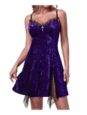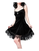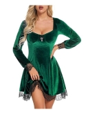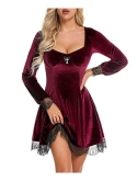 FASHION DESIGN: Stretchy velvet dress, sexy gothic dress, stretchy velvet dress, slip dress, slit goth dress, long sleeve velvet dress. Lace flower side, a-line version, bow design, soft and lightweight material, comfortable to wear and shows your curves and bust perfectly.
