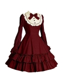Women Girls Goth Black Lolita Dress Long Sleeves Multi Layers Classic Sweet Lolita Dresses