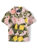DESIGN Features short sleeves, pointed collar, chest pocket, curved shirttail hem and allover palm tree with geometric print