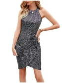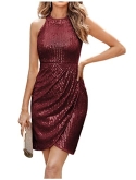 Unique FeatureThese sequin cocktail dresses for women features sequin, halter neck, ruched, sleeveless, stretchy, hidden zip(back), wrap hem, above the knee length, bodycon.