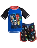 Officially licensed Marvel Avengers toddler boys cool and stylish short sleeve swim shirt top and cute and stylish swimming shorts bottoms