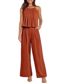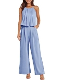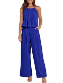 UNIQUE FEATURES: The Pants Romper Is Wide Leg Style, More Flowy And Loose, Suitable For Any Body Type Of Women. This Jumpsuit With Halter Tie Neck Design, Adds A Sense Of Elegance And Classy. The Upper Part Of The Jumpsuit With Ruffle Details Looks Lovely And Flattering. Women One Piece Outfits With Two Side Pockets, Easy To Bring Small Items. The Sleeveless Romper Ideal For Women Of All Ages, Accentuate Your Charming Femininity.