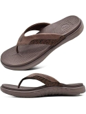 Leather Wide Strap:Mens orthotic flip flop have wide strap which is smooth leather in the ouside and soft textile in the inside.When you are walking, you will not worry about pain of the friction between the instep or toe and strap.