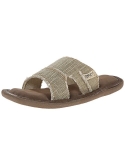Textile Imported Foam sole Slide sandal featuring woven hemp upper with raw-edge trim and side cutouts Padded memory foam insole