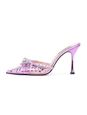 [Modern and stylish]: Crystals brilliantly shine around the rhinestone double bow, slip on this classic transparent pointy toe mule to set a joyful tone of day