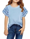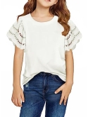 FEATURES: This girl t-shirts feature openwork ruffled sleeves, a crewneck, a loose fit, and a solid color design, making them cute and stylish.
