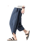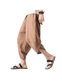 Fashion casual cotton lined blend loose fit harem trouser capri pants with elastic drawstring waist, suitable for both men and women, boy and girl