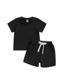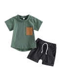 Baby Boys Summer Clothes Sets Outfits Toddler Baby Boys Summer Outfits Solid Hooded Sweatshirt Casual Elastic Drawstring Shorts Clothes Set,Contrasting color, round neck, baby boy short-sleeved T-shirt with breast pocket, summer casual striped shorts, elastic waist design, make your little boy more eye-catching among his peers.