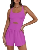 Eye-catching Appearance - This one-piece outfit will make you feel stylish and confident. The slim-fitting top features a cooling cutout in the center, while the airy retro-style shorts and strappy cutout back U-neck give it a unique look that is perfect for women's workout romper.