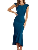 Design: The Overall Design Of Bodycon Dresses For Women Is Slim, Show Your Charming Body Curve. The Ruffle Design At The Shoulders, IncreaseTheLovelyElements. The Irregular Cocktail Hemline Reaches To The Calf, Elongates Your Legs Visually. Asymmetrical High Low Hemlines Swing As You Walk, Make You Attract The Attention In The Crowd.