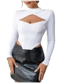DESIGN: Y2k tops features a sexy cut out design and a trendy mock neck, perfect for a night out or a party. The asymmetrical hemline and patchwork design adds a unique and edgy touch to this going out tops for women, making it a standout piece in your collection. The slim fit hugs your curves in all the right places, giving you a flattering silhouette.