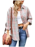 Womens oversized flannel plaid shirt long sleeve lapel button down shirt blouse tops with soft and comfy fabric, comfortable to wear in Spring, Summer, Fall, Winter