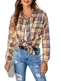 Features: Womens button down shirts, two pockets on the front. A great classic plaid shirt, it's an essential item in every fashion women or girl wardrobe. This plaid shirt can be used as a simple shirt or also can be a Cardigan, lightweight, loose fit for most body shapes.