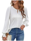Puff Sleeves and Smocked Cuffs: The womens blouses and tops dressy features fashion puff sleeves and elastic smocked cuffs for a dressy casual look, perfect for staying on top of the latest fashion trends.