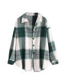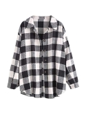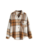 The casual flannel jacket with button front top,Plaid print,Scoop hemline,Collared,Two chest pocket,Single button on cuff,Soft fabrication,Oversized fit,Drop shoulder.