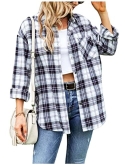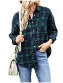 Lumister Oversized Flannel Shirt Women Long Sleeve Plaid Button Down Buffalo Shirt Blouse Tops with One Pocket