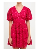 The perfect party dress! This little number is sure to turn heads at your next soiree. With delicate crochet lace and pretty puff sleeves, this mini dress is feminine and chic. The front and back v-neckline add a touch of allure, while the lace trim completes the look.