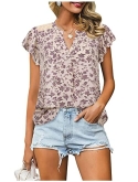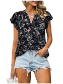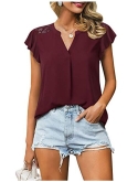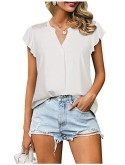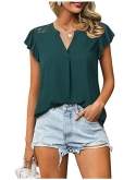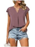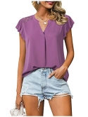 Irregular flutter sleeve tunic blouse with notch v neck covers your arms,shows a slimming look and gives your an elegant and feminine outfit