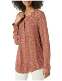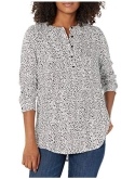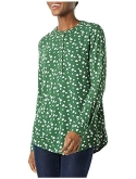 This long-sleeve woven blouse is flattering and flowy and features a button front closure, and back yoke with box pleat