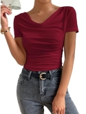 Features: Cowl neck, short sleeve, ruched, draped front, pullovers, fashionable