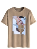 Features: Round neck, short sleeve, letter print, figure graphic tees, pullovers, fashionable