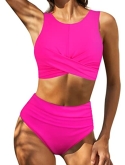 High waist bikini bottom, with gathering ruched in front, offering the tummy conceal effect; Moderate cutting bottom and butt coverage provide comfortable fit, with full lining, perfect high waisted bikini set for women
