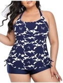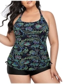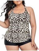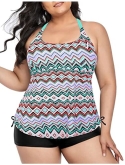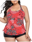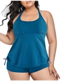 Attractive round scoop necklineajustable shoulder straps and soft removable padded bra,plus size tankini swimsuit for women