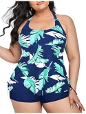 Two piece ruched swimsuit provides tummy control, perfectly hide the imperfection,tighten drawstring and pleated hem creat a slimming waist look
