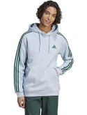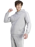 Embrace urban coolness with this edgy and warm adidas Essentials Fleece 3-Stripes Hoodie with kangaroo pocket on the front. The super-soft fleece pullover features crossover hood construction with drawstrings and long sleeves finished with classic three-stripe design.
