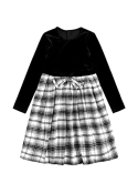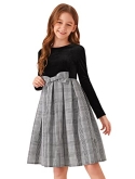 Feature: Round neck, long sleeve, plaid, a line, pleated, zipper, bow front, high waist, fashionable