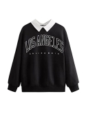 Feature: letter print, collar, long sleeve, button, drop shoulder, pullovers, fashionable