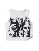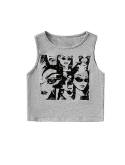 Features: Round neck, sleeveless, figure print, pullovers, fashionable