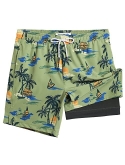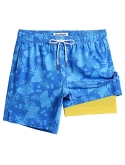 2 in 1 Mens Swim Trunks with Compression Liner: This mens swimming trunk has a built-in compression boxer brief, which provides support for your thighs and helps prevent from sticking to your skin when its soaked. Its stretchy, elastic, breathable and much safer than one layer shorts.